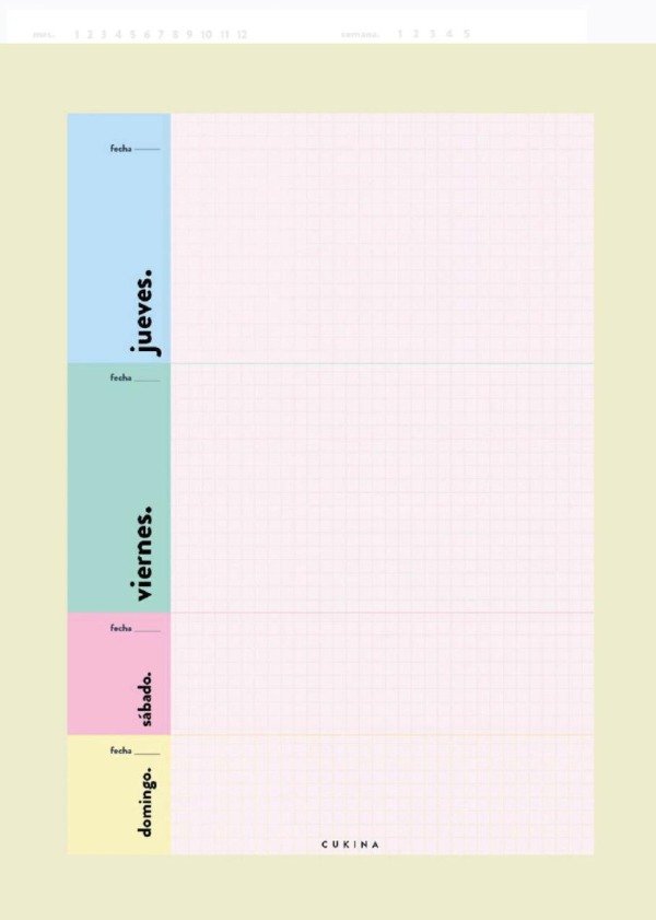 -Semana a la vista en dos hojas horizontal por 6 meses.