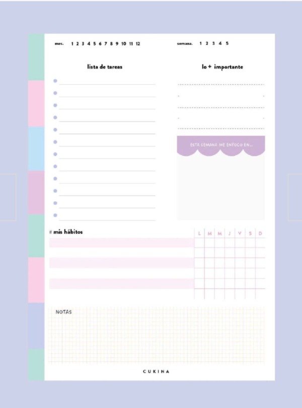 -Semana a la vista en dos hojas horizontal por 6 meses.